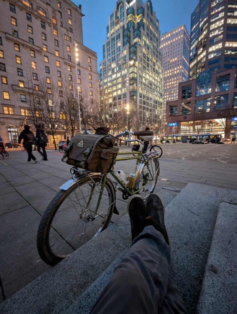 I made my way out the 12km long parkway, then across north Vancouver and into Stanley Park – where I rode through some trails, visited an old tree, had a beer by the pond while watching ducks, then eventually across town to pick up a couple cases of beer – that barely fit and weighed a ton!
