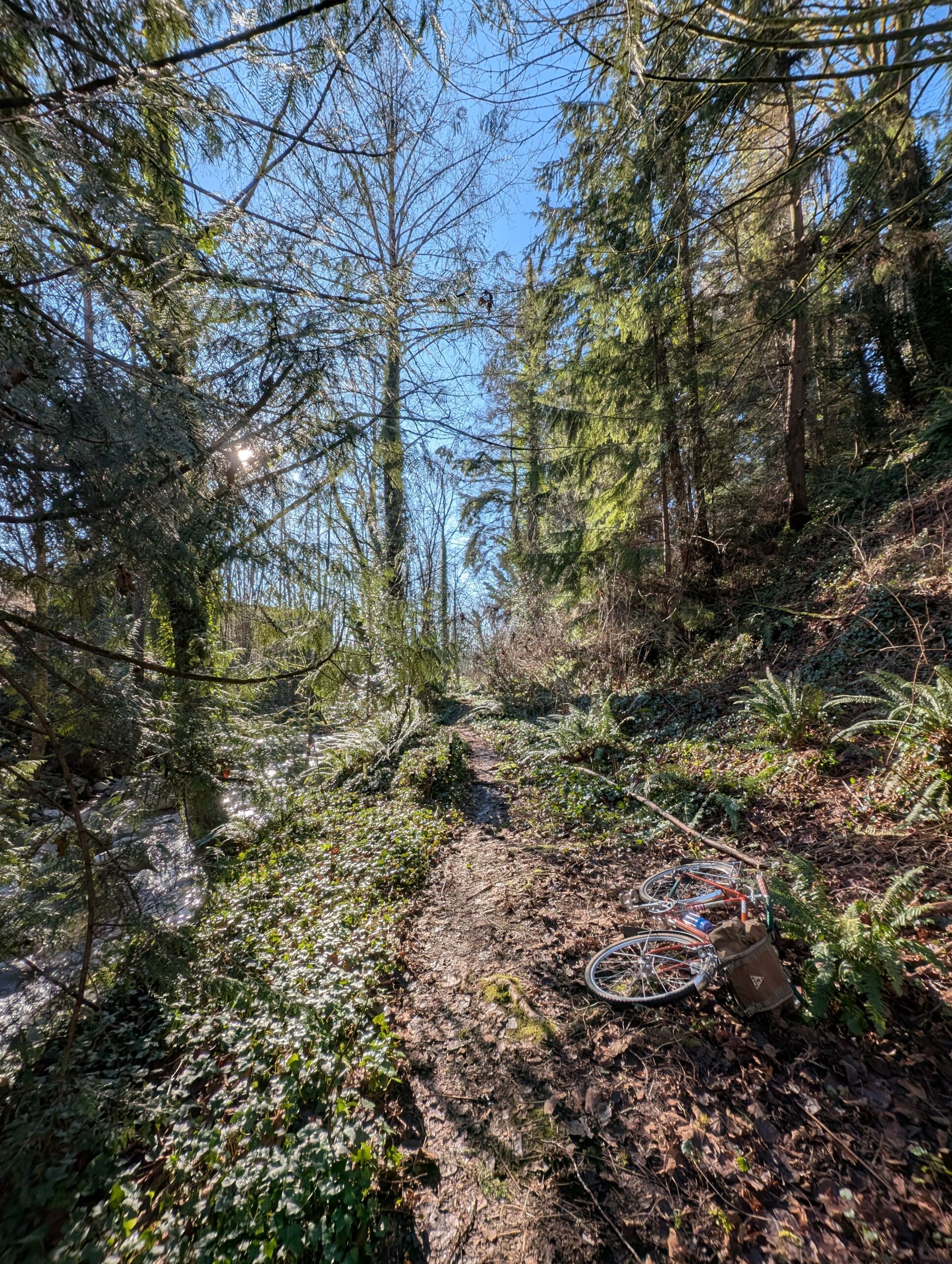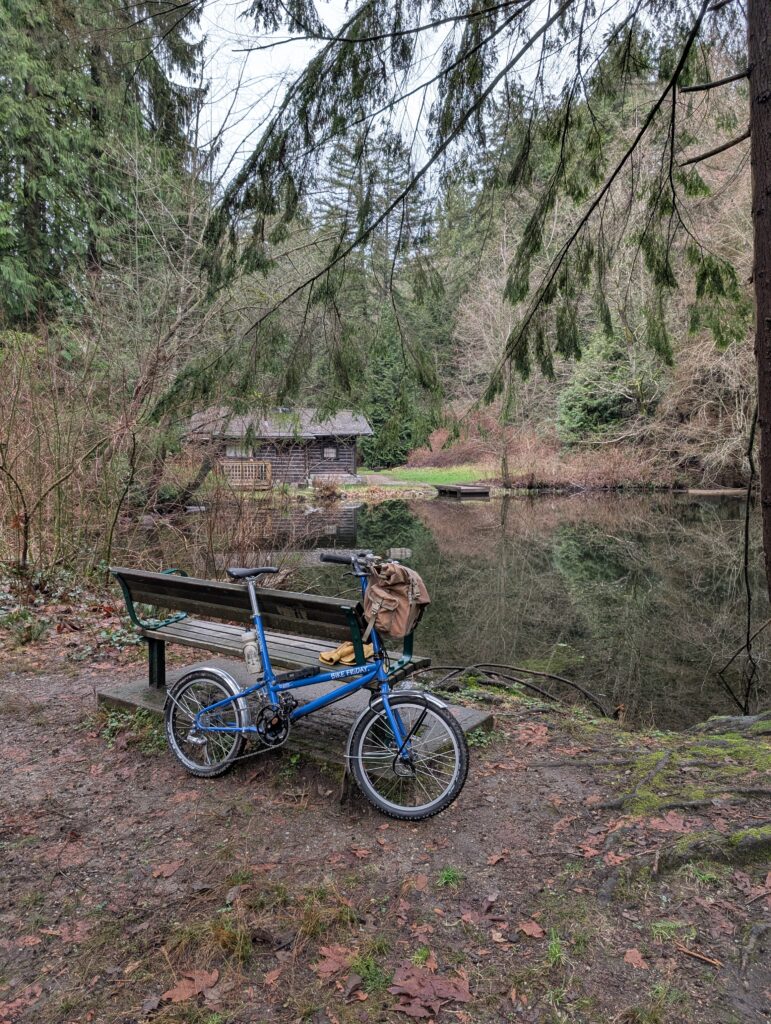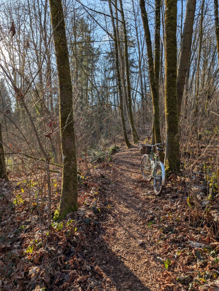 The following day, January 12th, I rode out to Burnaby to pick up a Marketplace purchase – and took a rather silly way back, tracing through the woods along these older paths that don’t seem to get a lot of traffic, leading to Deer Lake, where I toodled around for a while.