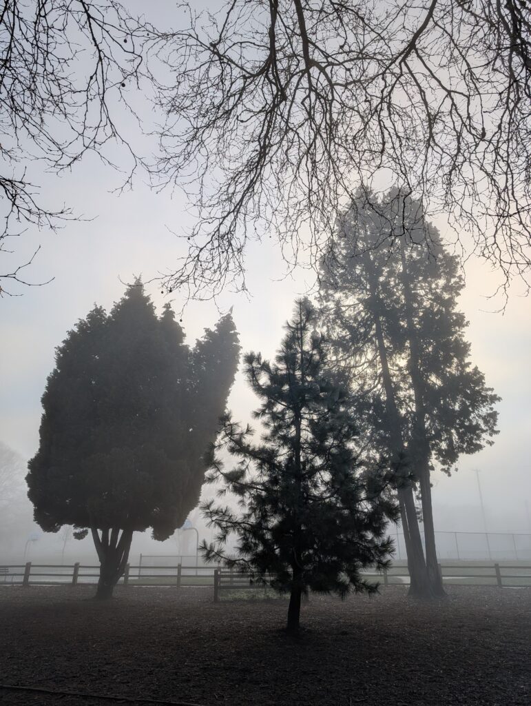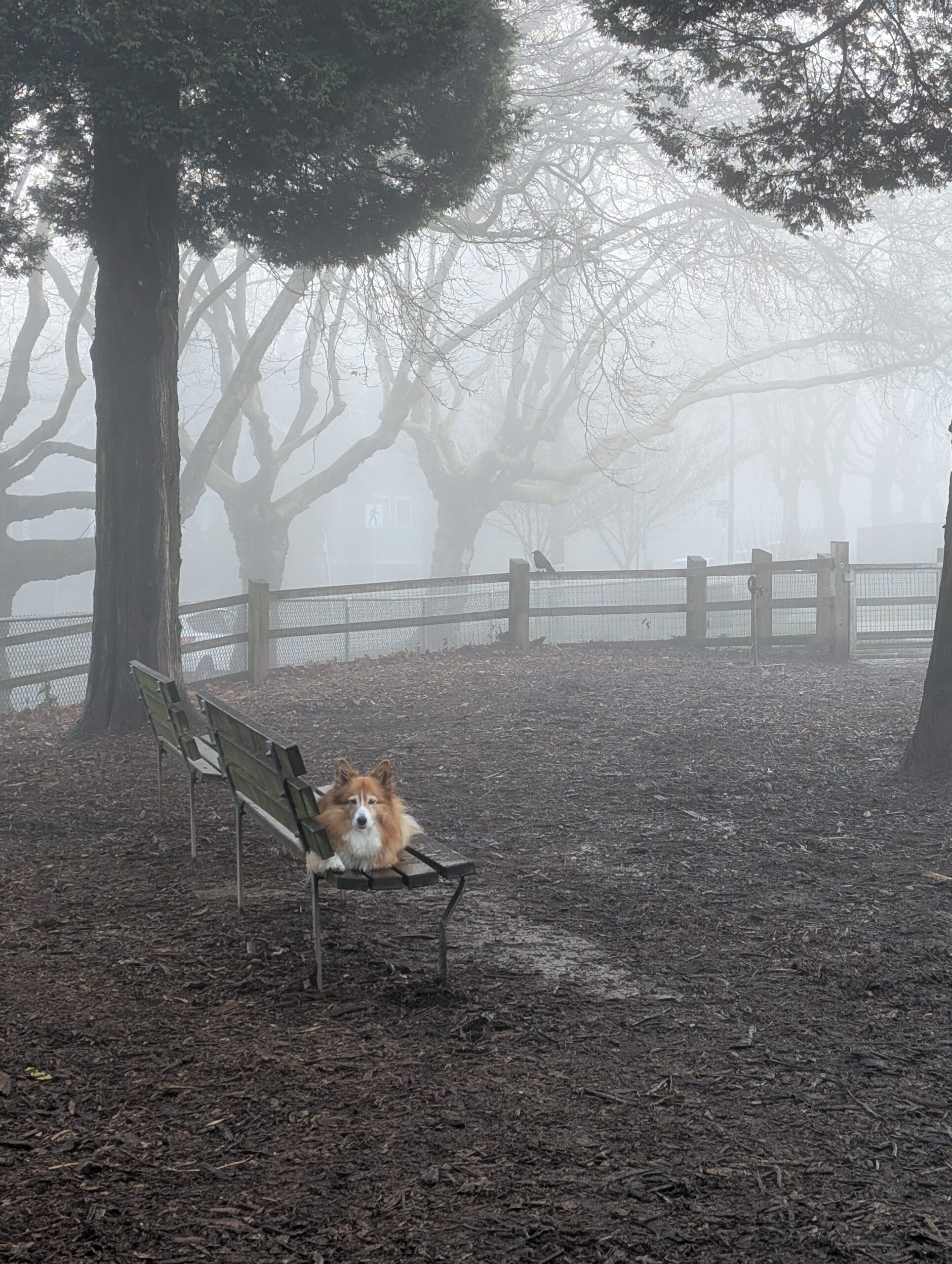 At this time we only had Leia, as we lost our Aussie, Dodger, to cancer in summer 2024. We dog-sat a friend’s pup, Cheddar, for a few days. Also, a couple pics from a scenic winter morning at the local dog park. The tree on the left of the right-most photo has recently fallen from a windstorm. Pretty sad.. glad I have this photo of it.