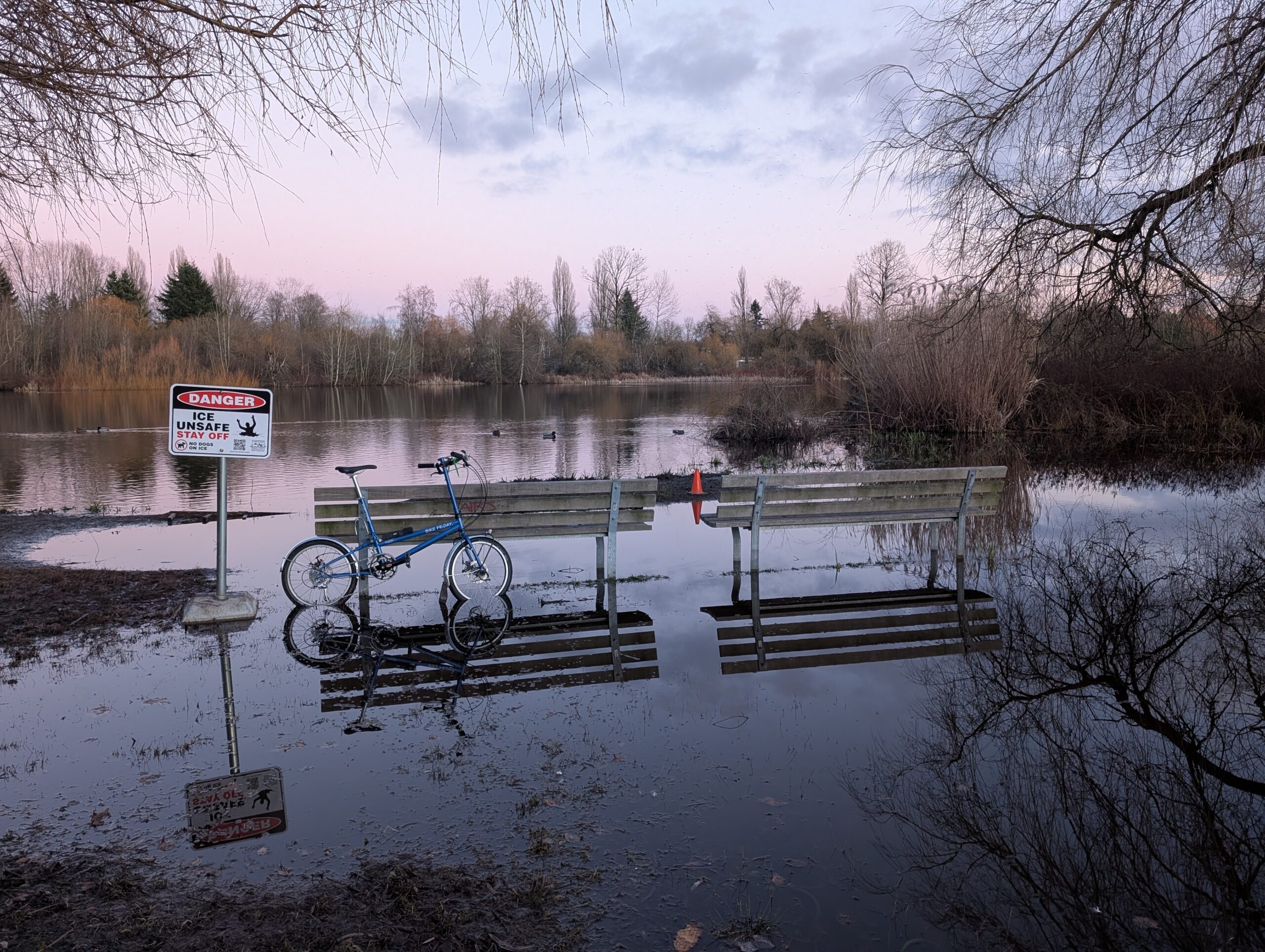 Speaking of my commute, my route home deviates slightly from my route into work, taking me along Trout Lake – the water level was quite high and a lot of the low lying areas flooded. As I write this (Dec 20, 2025) the flooding has returned to similar levels.