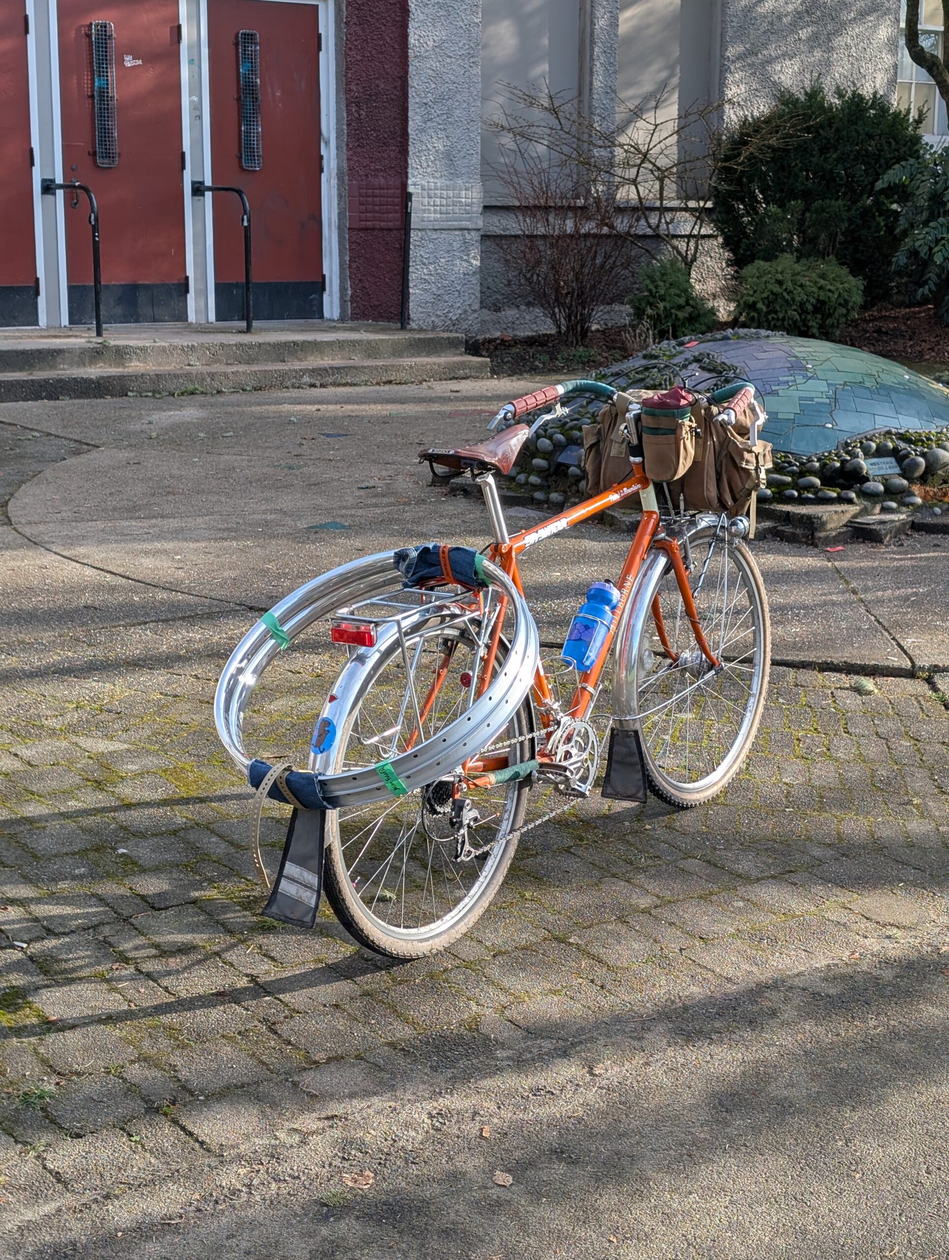 As I flip through my photos I’m impressed how much riding I got in for January! The next day, Sunday the 19th, I was back out there again – delivering my Bike Friday front triangle to Firstlight Frames to have a Brompton block welded on, and then riding around for a couple hours while he did his work.
