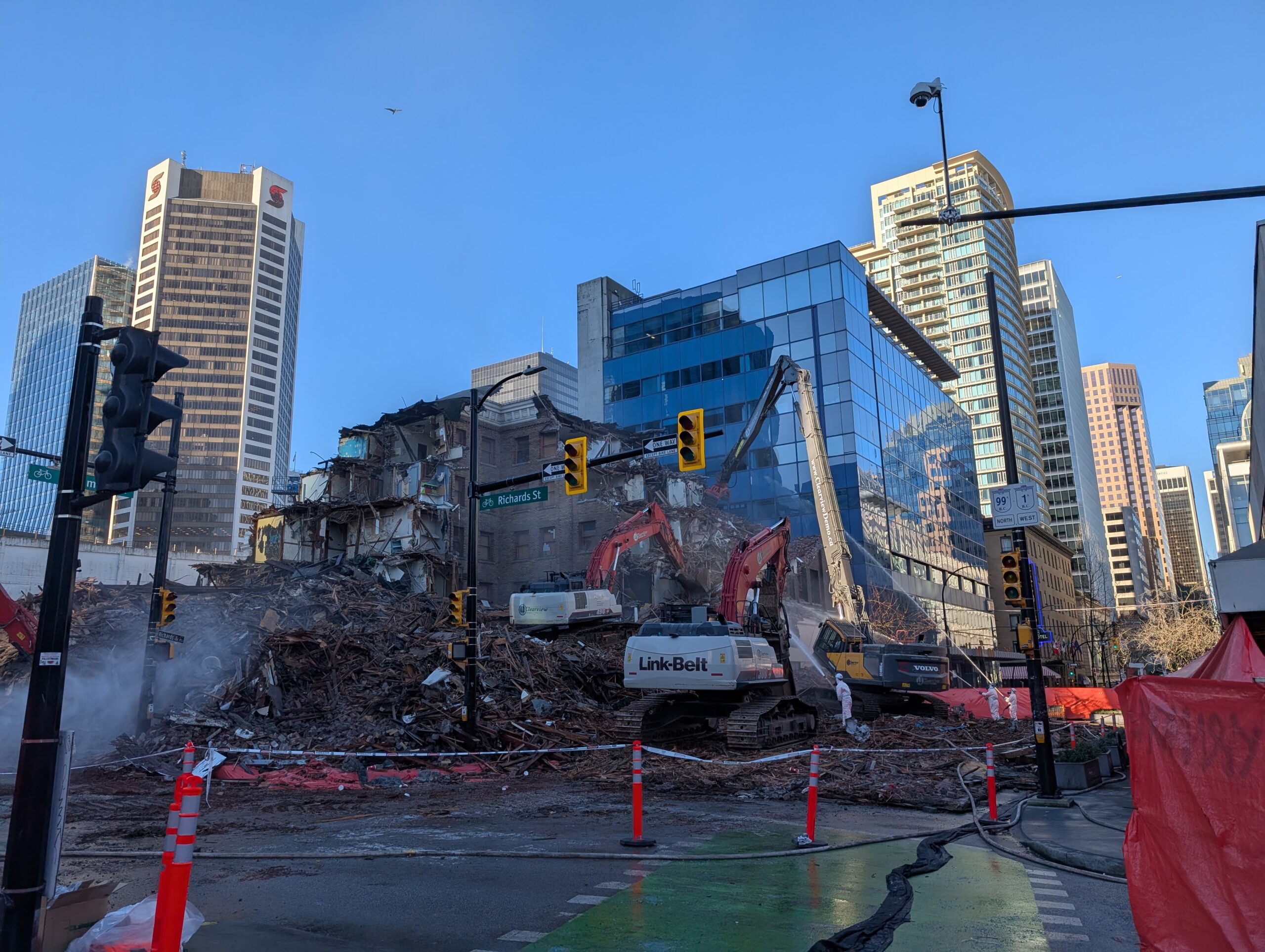Thomas’ shop is located near the Downtown Eastside, and from there I passed through downtown and stumbled upon the demolition of a historic building I had heard was happening – I watched for a while alongside a bunch of others with a sadness in the air.