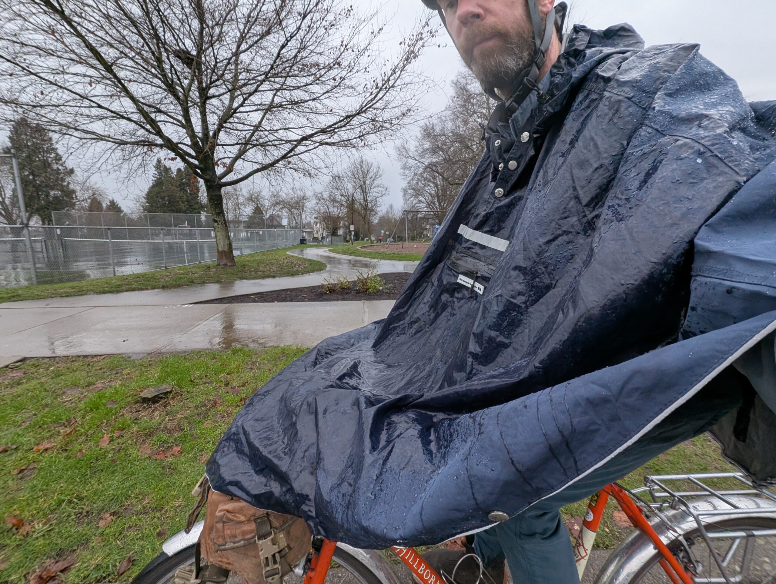 On the 11th, which was a Sunday, I took a chance with a small break in the rain – the rain held off long enough for me to get up to the viewpoint shown below, but I got rained on the ~5km ride home. Love the poncho though, underneath I was quite dry! It works with the front bag to offer extra leg coverage.