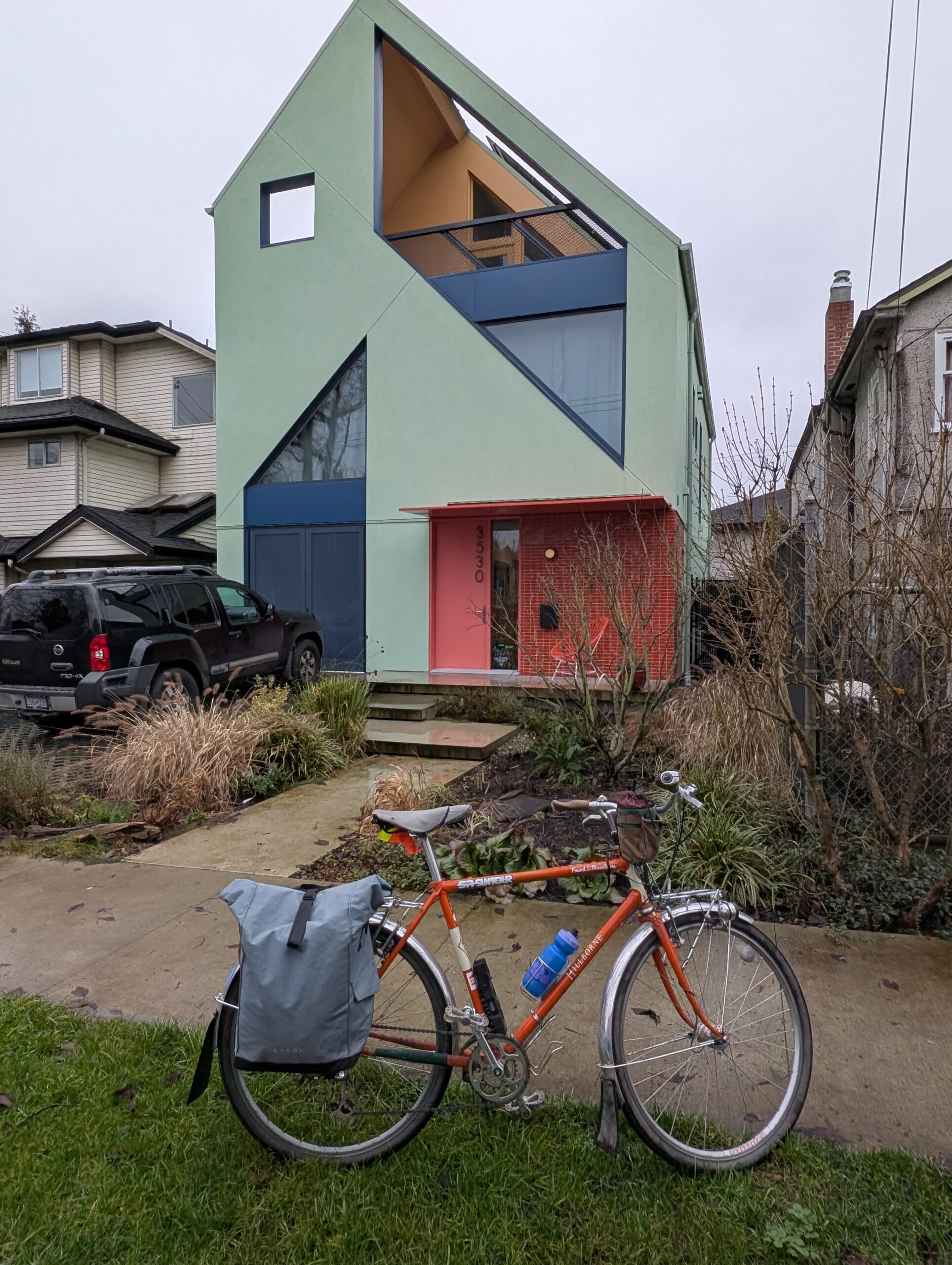 I commuted home mid-day during the following week and took the opportunity to ride past three funky houses that are loosely along the longer route I can readily take.