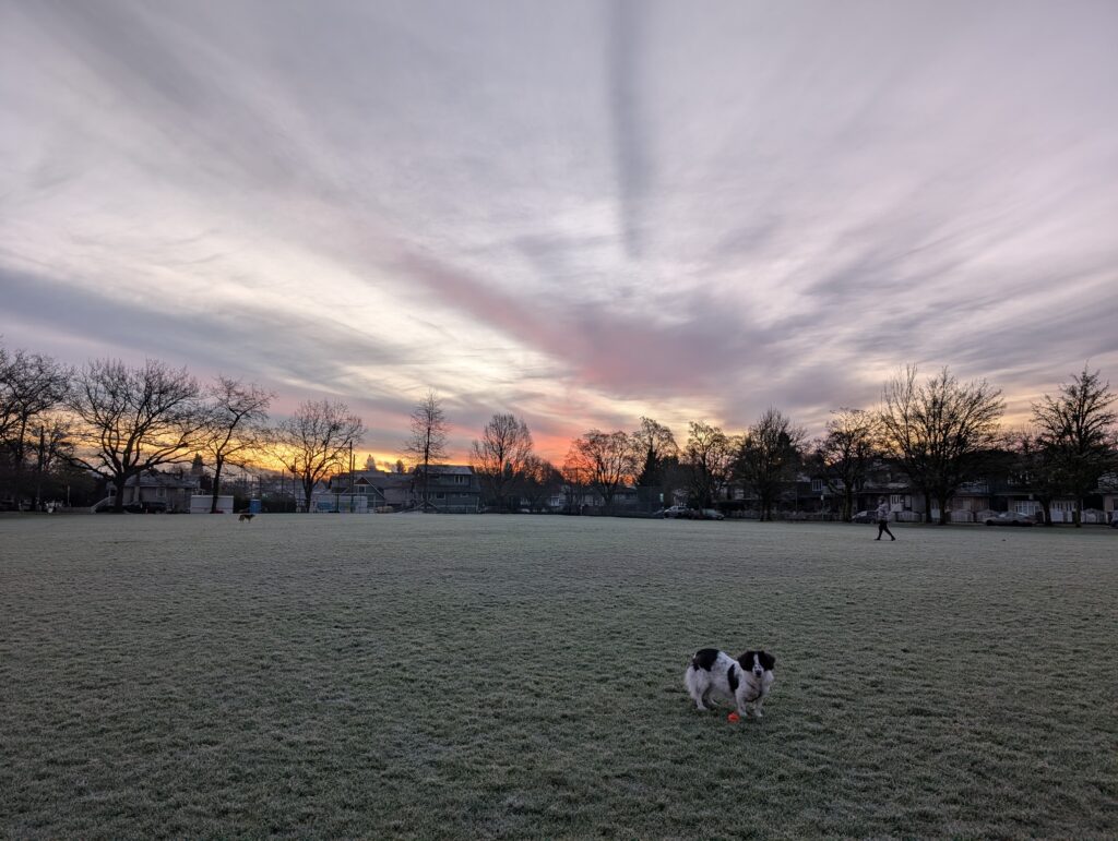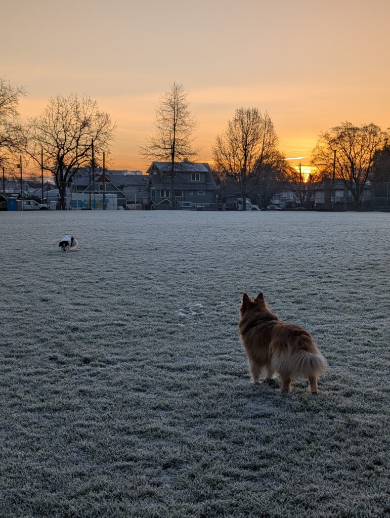 My mornings often looked like this though – frosty grass and lovely sunrises. Soon the sunrise will be too early for me to regularly catch, so I’m enjoying them while I can!