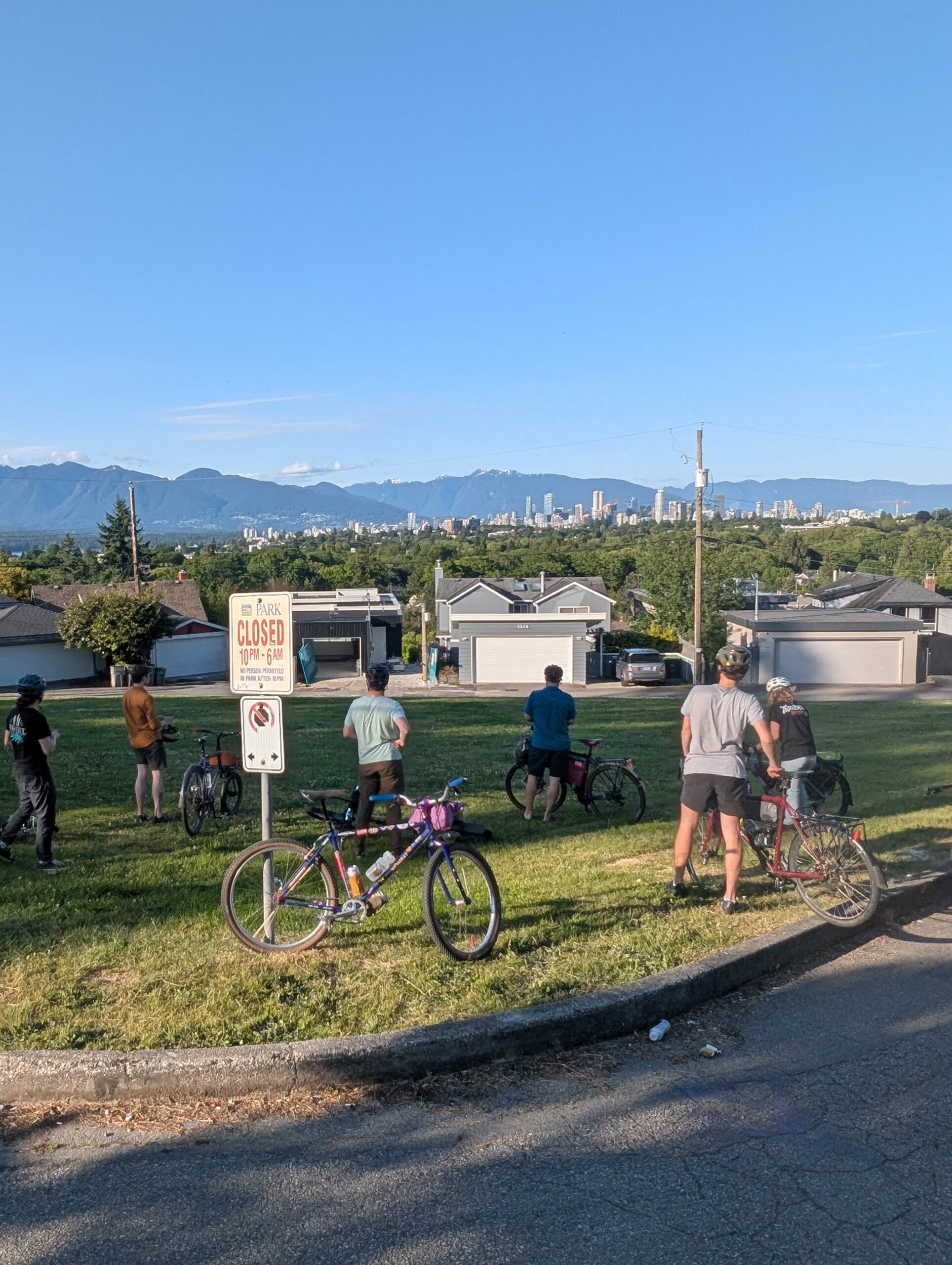 Unsurprisingly, June started with a bike ride. I seem to always get out on the first of the month. This time it was up the Seymour valley a little ways, not quite to mid-valley, to a nice spot along the river to have a mid-afternoon beer. Two days later was parkbagging again, and I haven’t explained what that is. It was started by another local bike fella, Mike, earlier in the pandemic as a way to get out and enjoy some time with friends outside. The premise is this: ride to every park in Vancouver in alphabetical order (2 or 3 at a time, typically) and have a beverage (most cases a beer) in each one. This has been going on for about two years at this point, and as of this ride, we were in the Q’s. The last park was Queen Elizabeth Park, one of the biggest and best of Vancouver, and we sat at the lookout – me on the front of Lukas’ cargo bike pictured below.