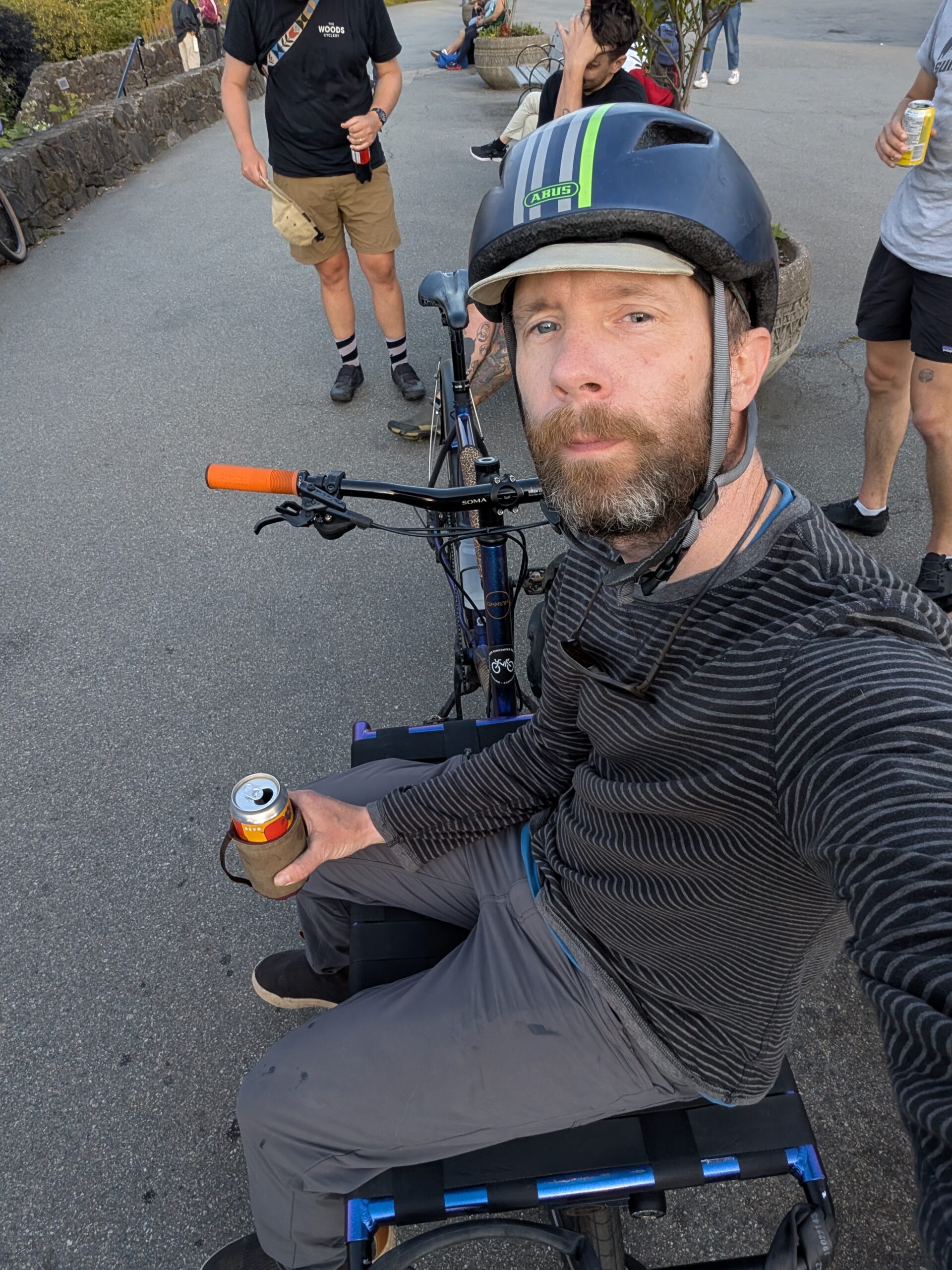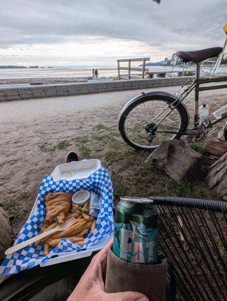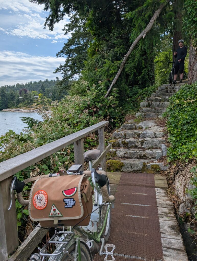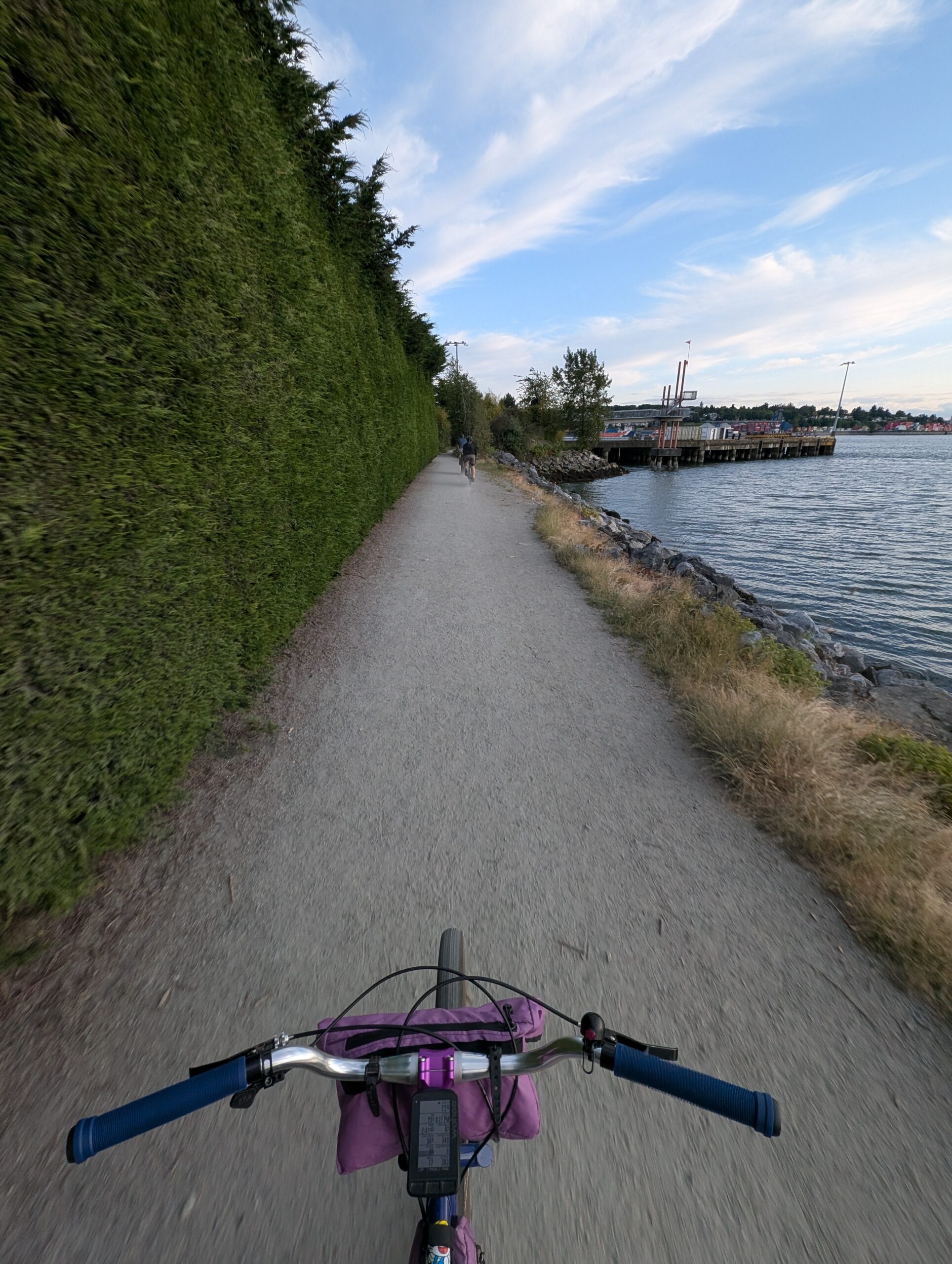 Upon reflection, there was actually a good bit of stairs on that seaside path. But it was really nice, so I hardly noticed until now looking back at the photos. We ambled to Ambleside and had fish n chips while a band played nearby on the beach. Summer vibes! Ride was 52.5 km and 833m.