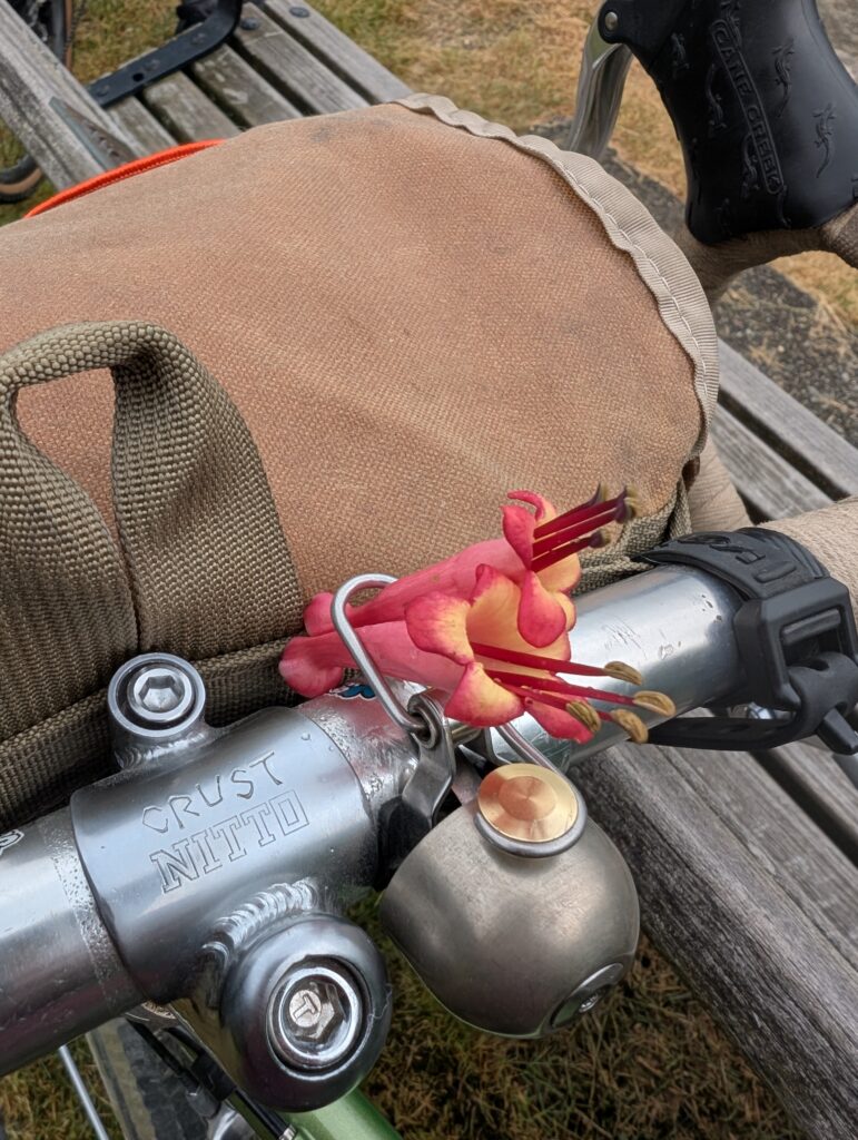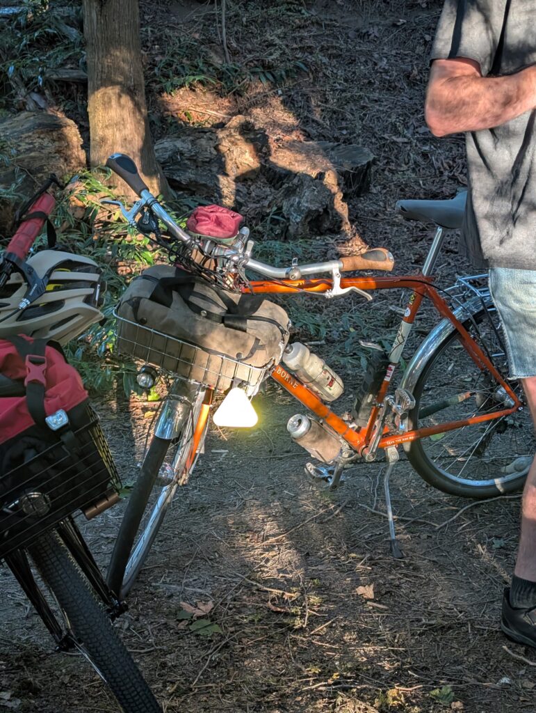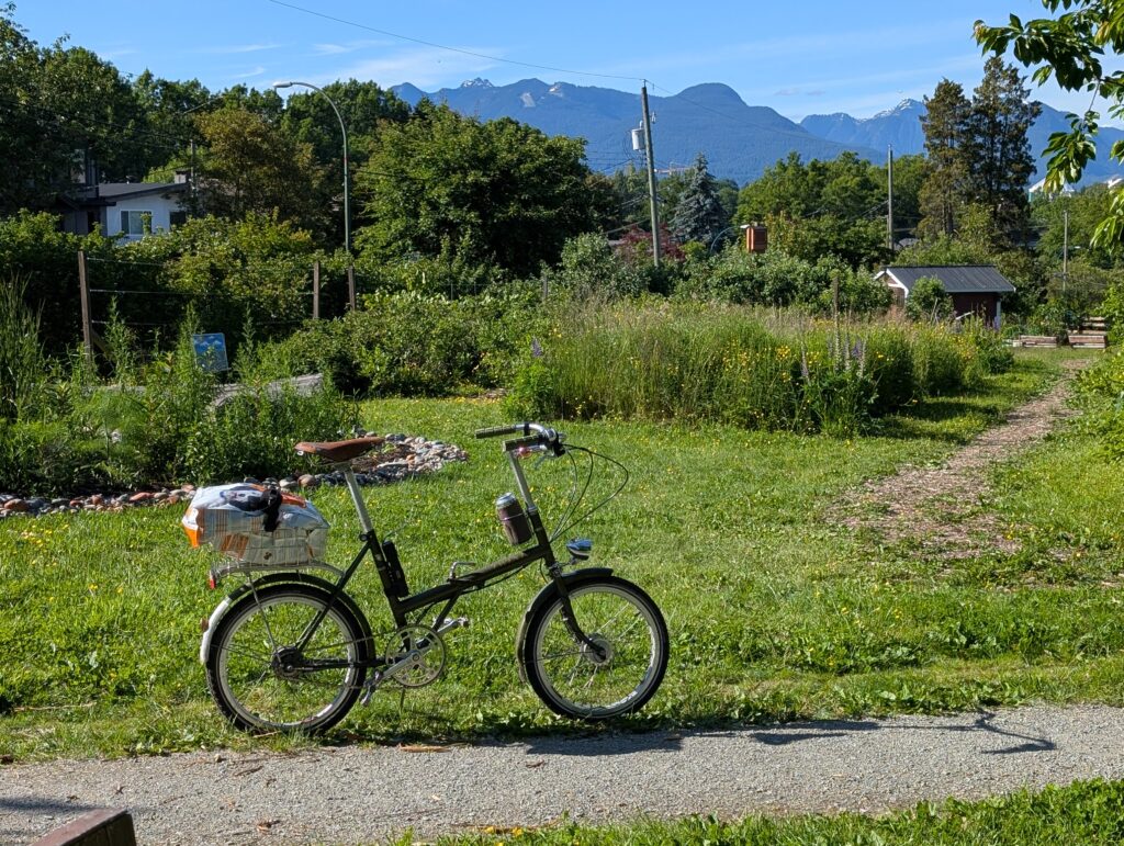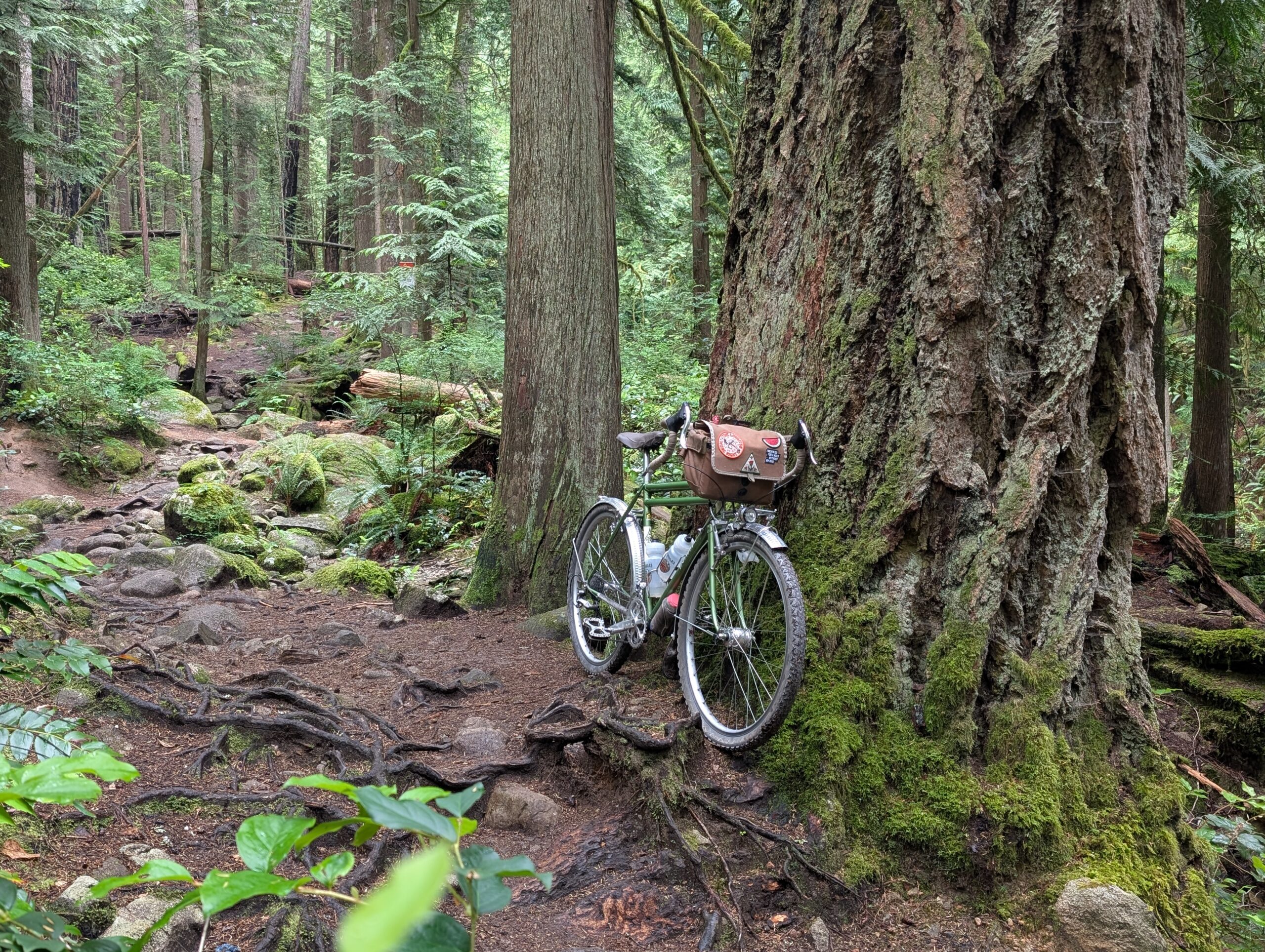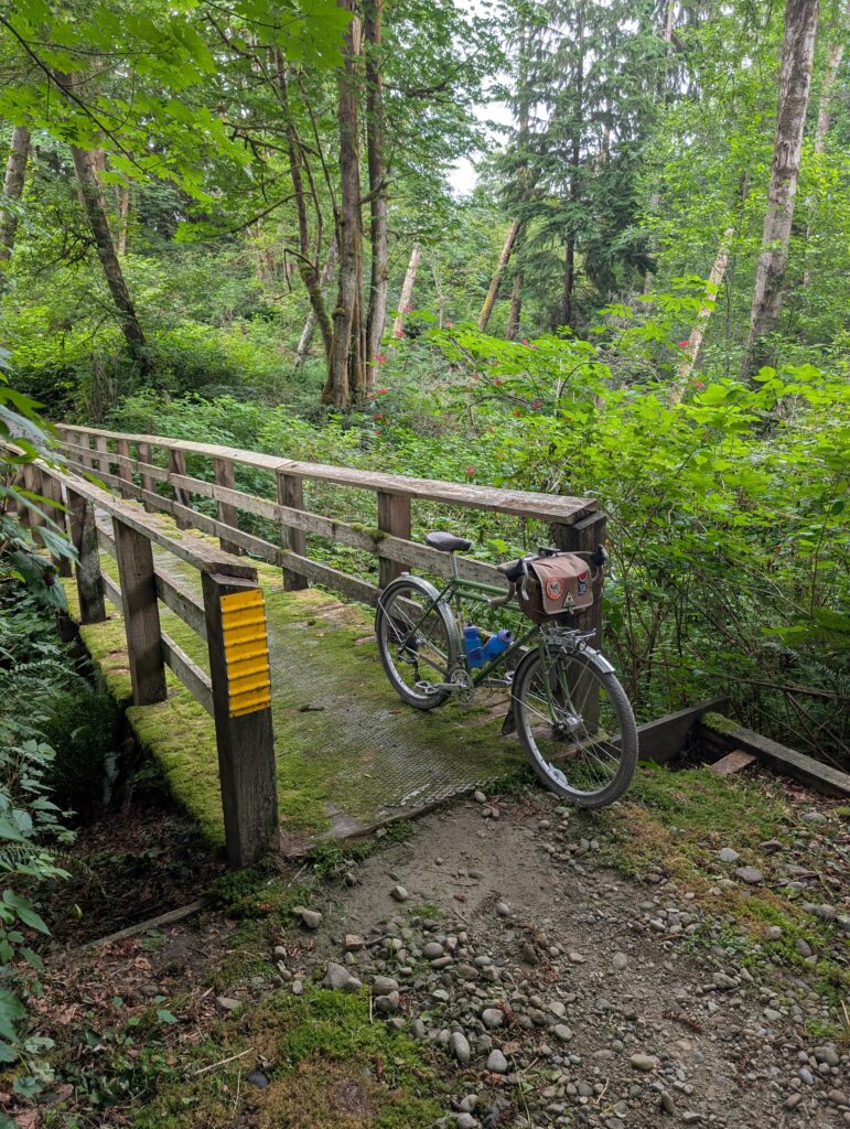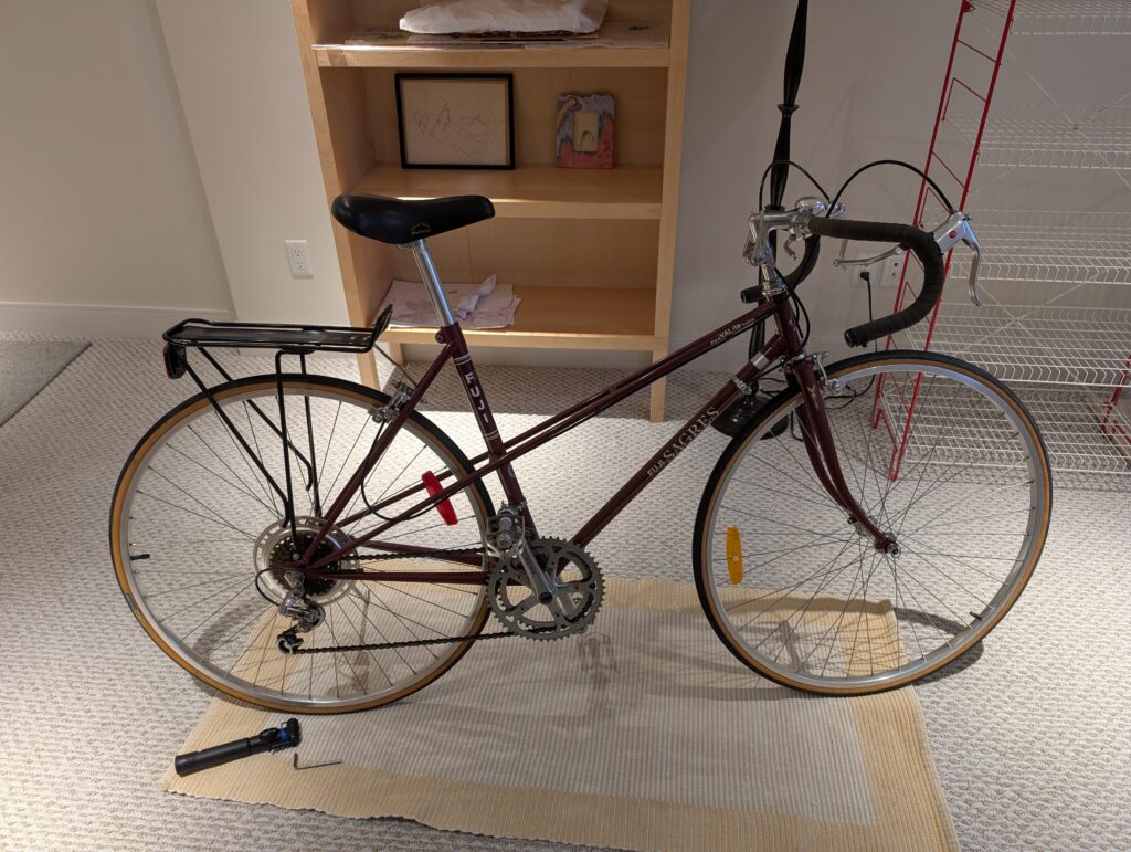 I was also welcome to ride Aimée’s mom’s bike: a vintage mixte that was much too small for me. I’m impressed she likes the bars so low; I already feel too old for that. The bike hadn’t been ridden much in the past who-knows-how-long, but got the tires pumped up and the brakes dialled in. So far it had been raining most of the time since we’d arrived, so a bike ride was not imminent – plus, I did obviously have to prioritize spending time with the people we flew across the country to see.