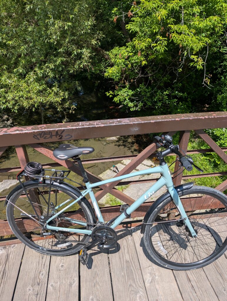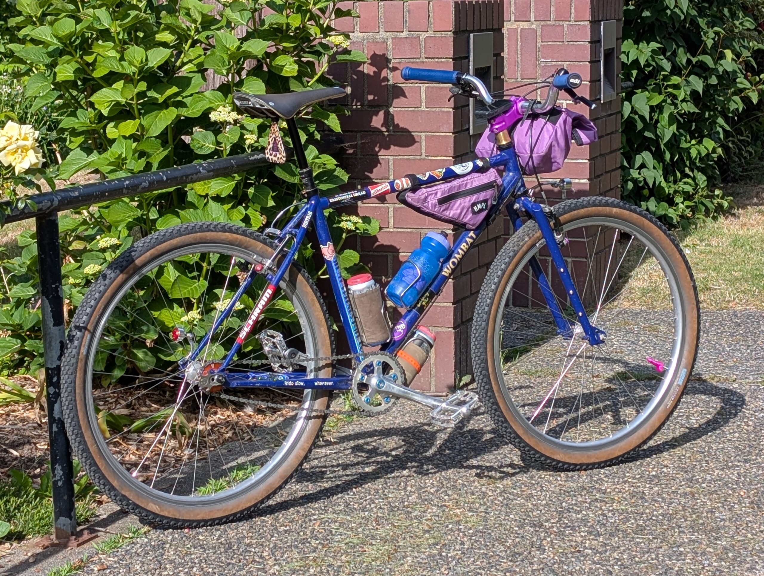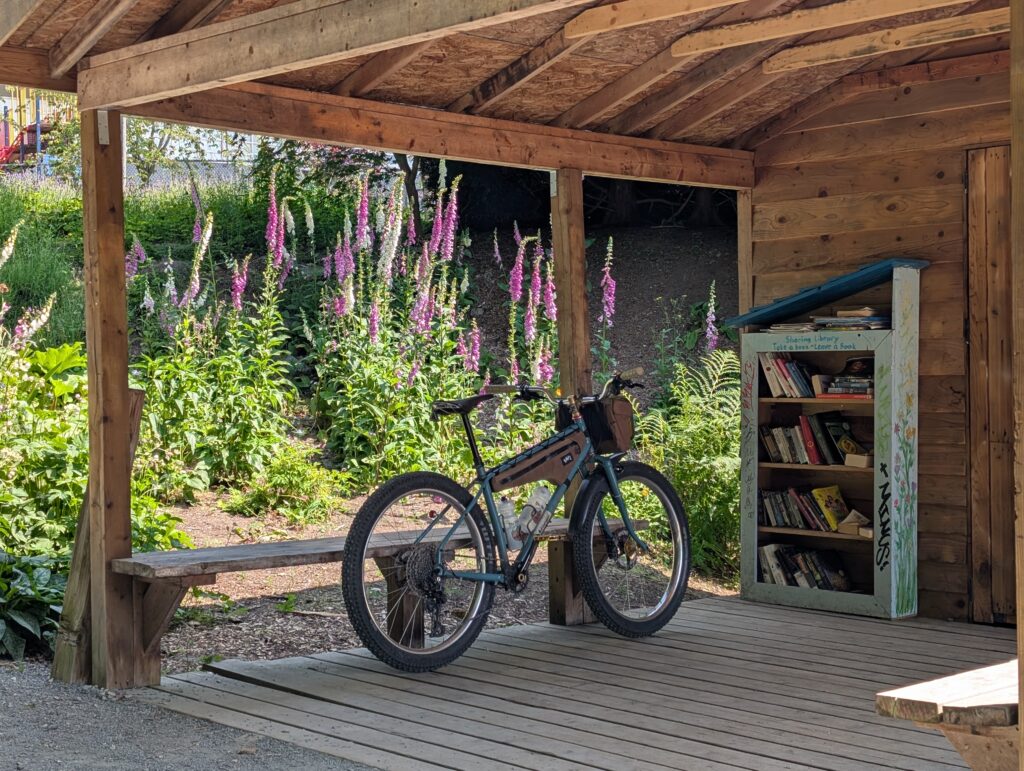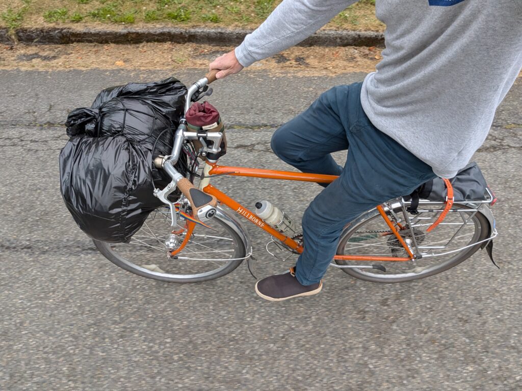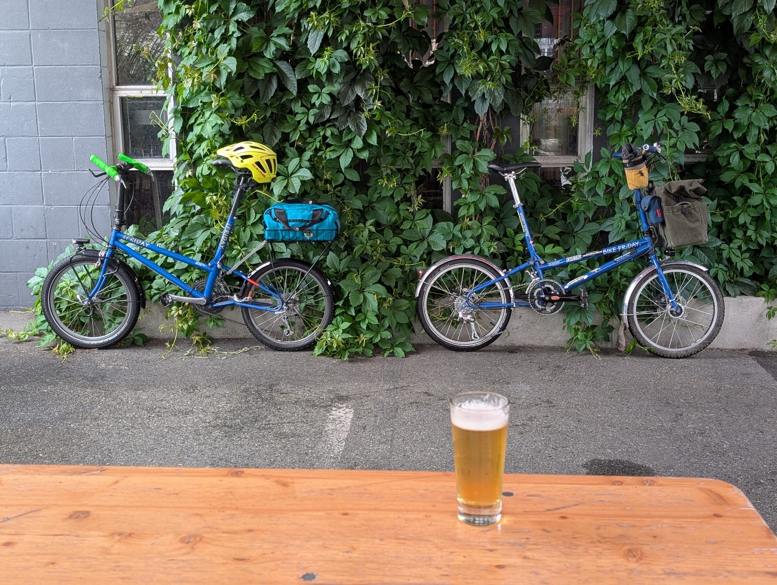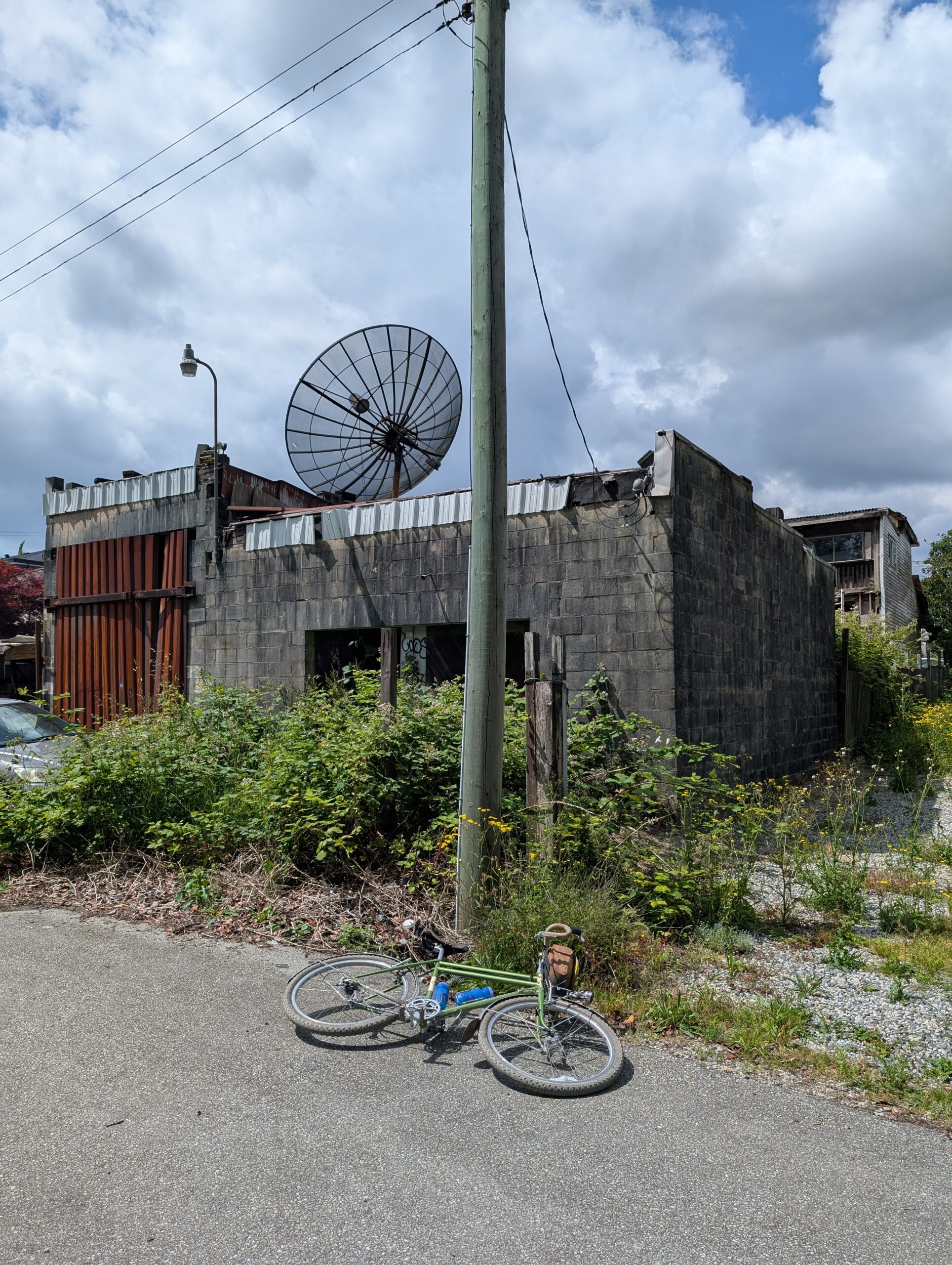 I was also welcome to ride Aimée’s mom’s bike: a vintage mixte that was much too small for me. I’m impressed she likes the bars so low; I already feel too old for that. The bike hadn’t been ridden much in the past who-knows-how-long, but got the tires pumped up and the brakes dialled in. So far it had been raining most of the time since we’d arrived, so a bike ride was not imminent – plus, I did obviously have to prioritize spending time with the people we flew across the country to see.