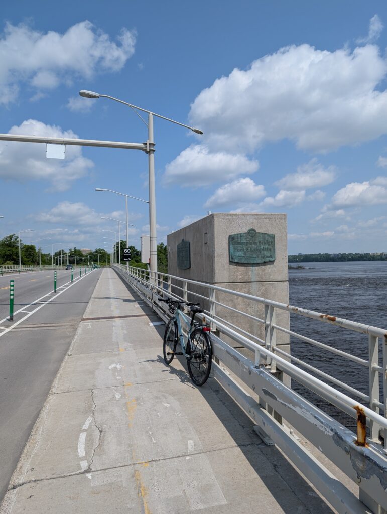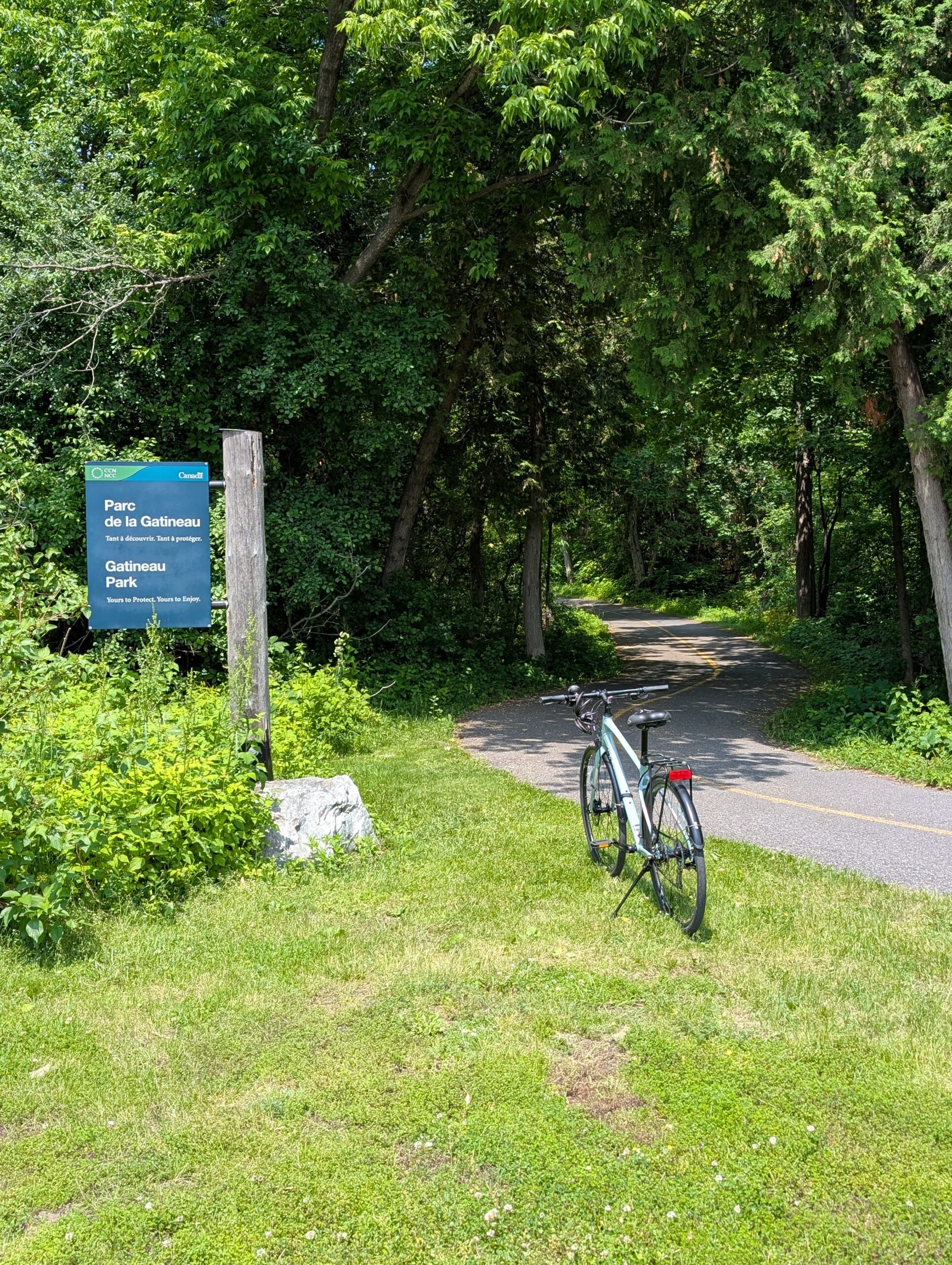 Wednesday morning I snuck off again for a couple hours’ ride on the hybrid. I rode over the nearest bridge into Quebec because I hadn’t been over it yet, and travelled northwards on a gradual climb into the Gatineau Hills after a little stretch along the river. Once again, the network of bike paths was impressive.