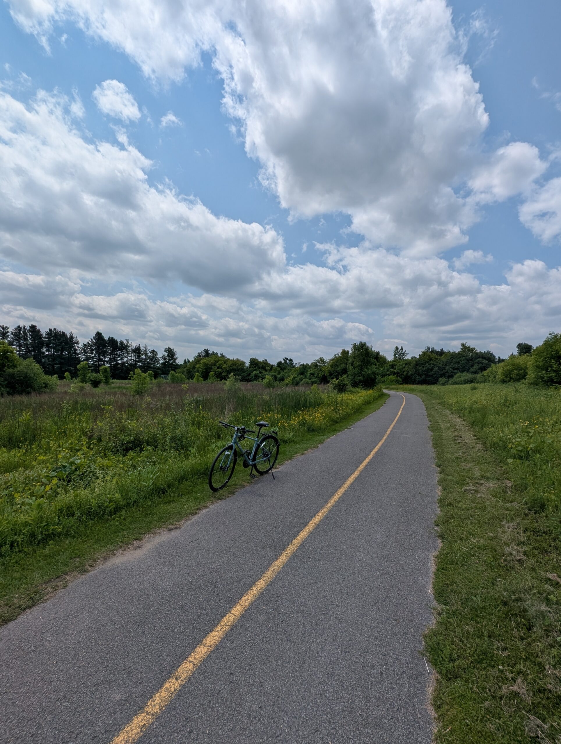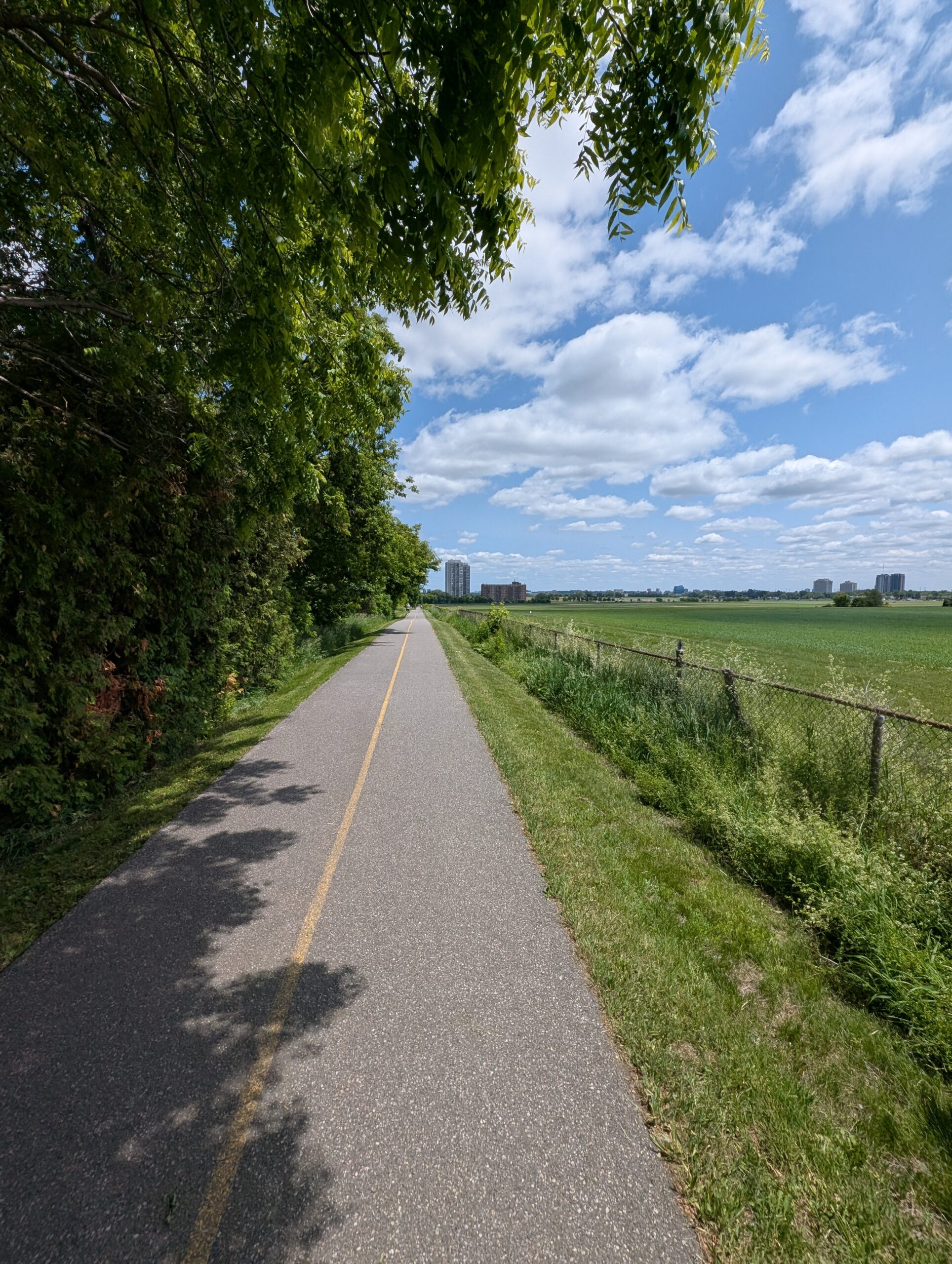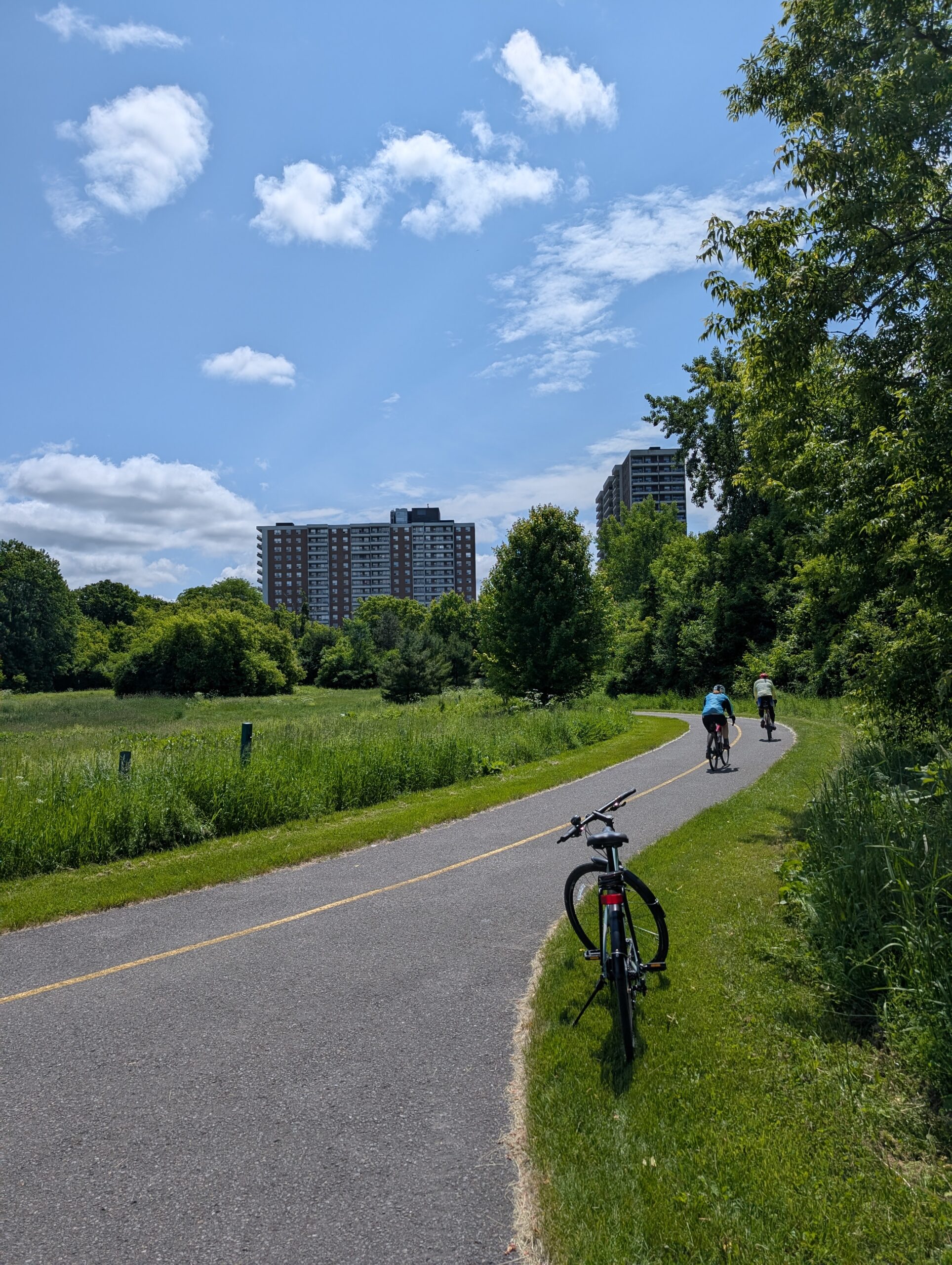 We hung out with the family for the afternoon, and I got word that I could also borrow Aimée’s sister’s bike: a modern hybrid with disc brakes and flat bars – yes please! The vintage road bike got me around, but it wasn’t exactly comfortable. Feeling the itch from not riding much the past week, I snuck off for a 45 minute ride while others readied for dinner. I rode to the arboretum I remembered passing on the way in from the airport, about 11km round trip. More beautiful paths! Ottawa is pretty flat so easy recreational cycling is extremely accessible here with this network of paths – but while it was amazing for a week visit, I can imagine it gets boring after a while.