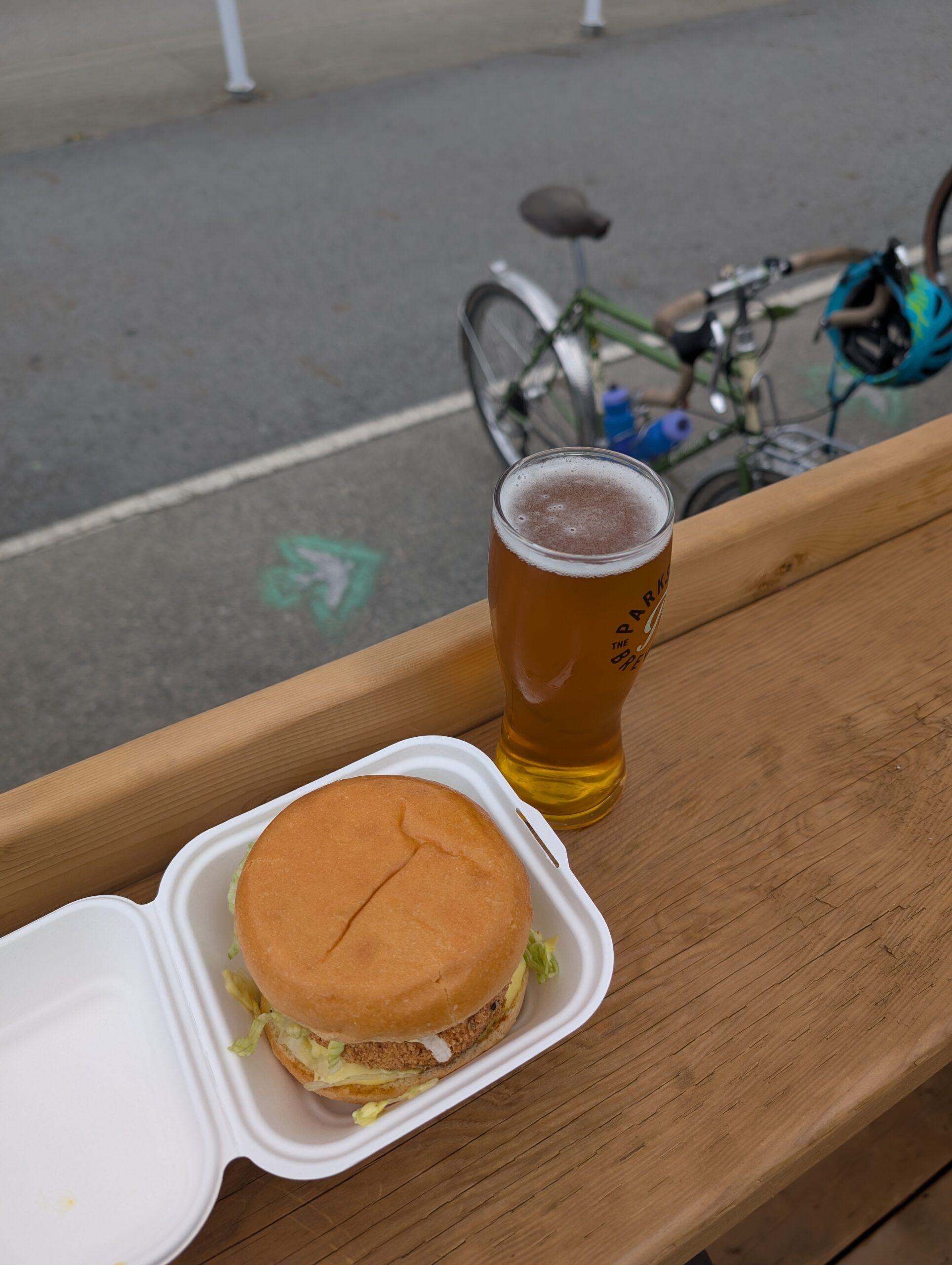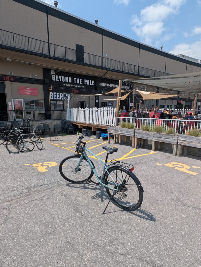 I rode into the park for a while with the initial goal of making it to Pink Lake, but came to realize it was a little further than I had time for. So I rolled back down the hill on another bike path, and into downtown Ottawa again. With some further free time granted, I explored around and ran across Beyond the Pale, a brewery name I recognized. They had a massive patio so I saddled up for some lunch.