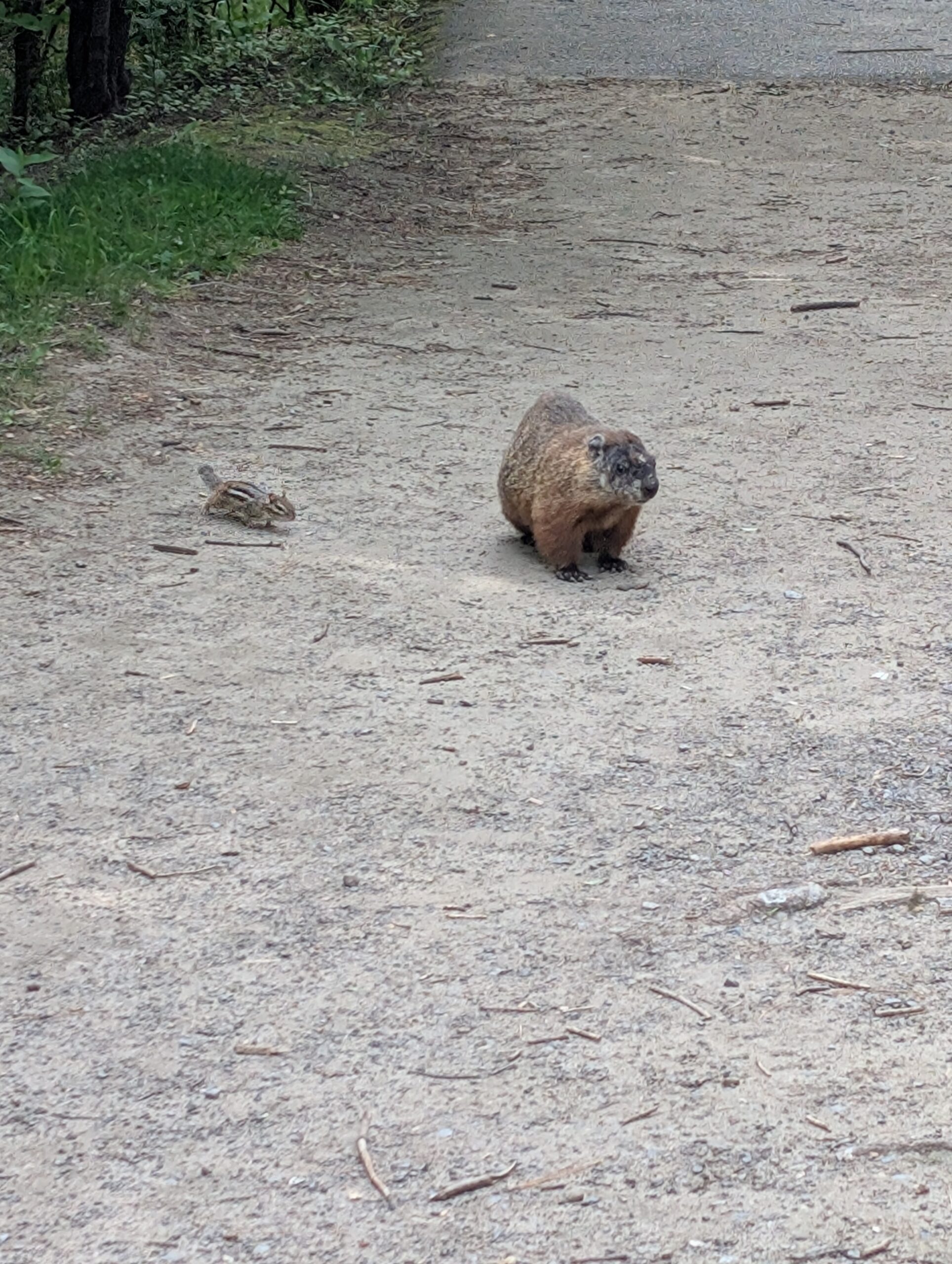 As our trip drew near a close, we visited Hog’s Back falls for a nice walk with Aimée’s mum and pup. We encountered a groundhog and chipmunk duo.