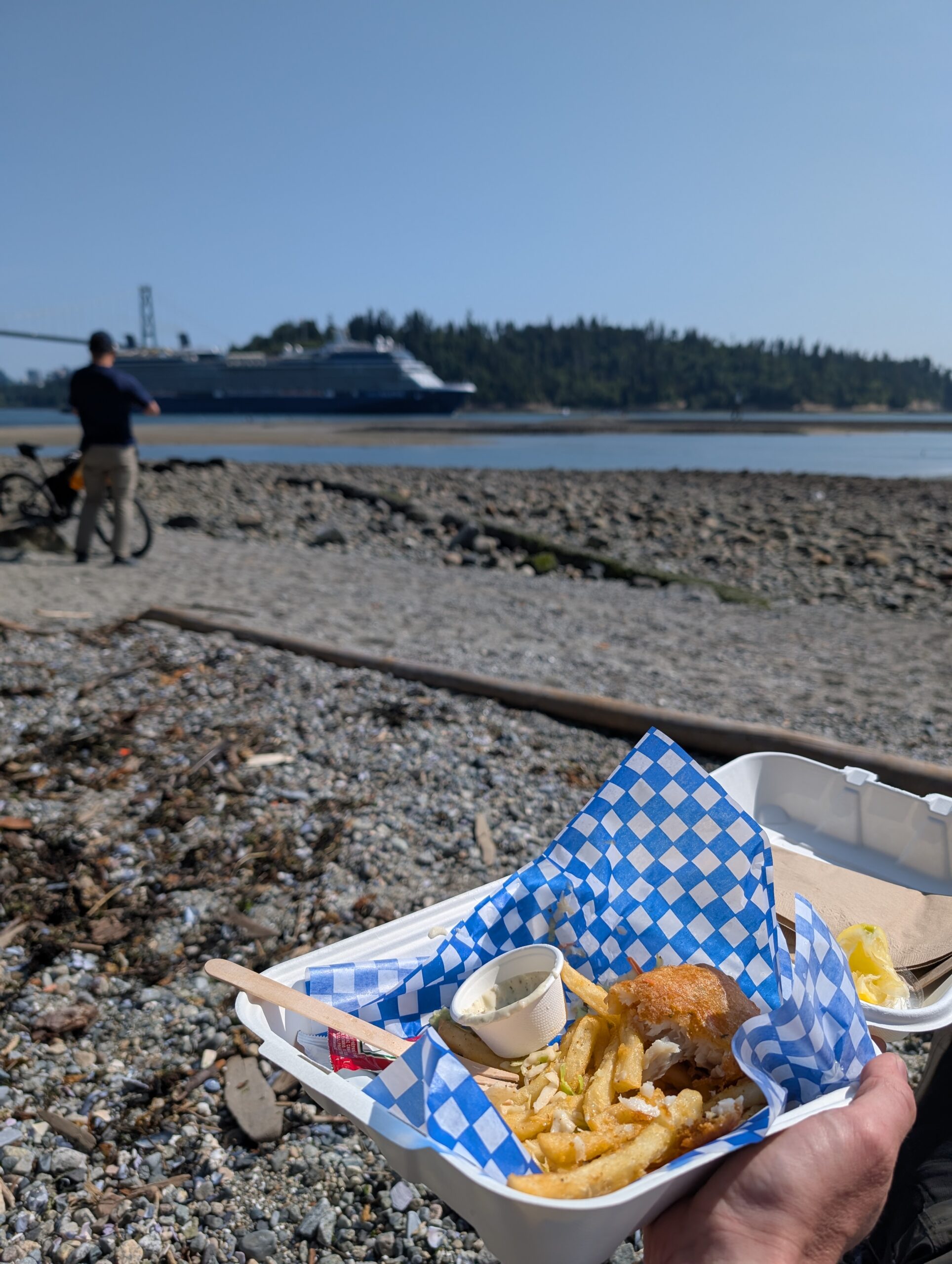 But all’s well that ends well, and I had fish n chips while watching a ferry float past. Not bad, not bad.